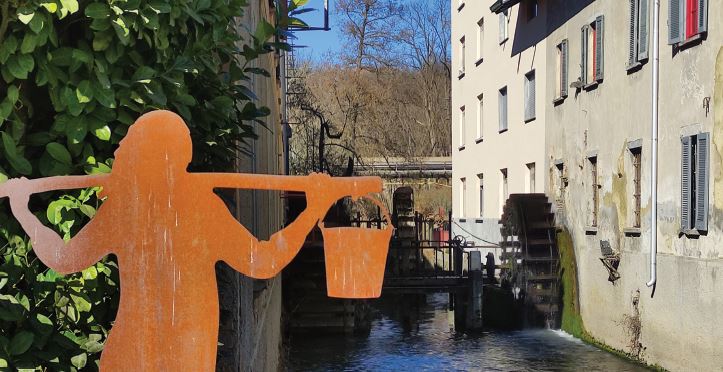 I mulini e la ragazza col baggero nei pressi dell'omonima frazione di Merone (foto S. Rossi)